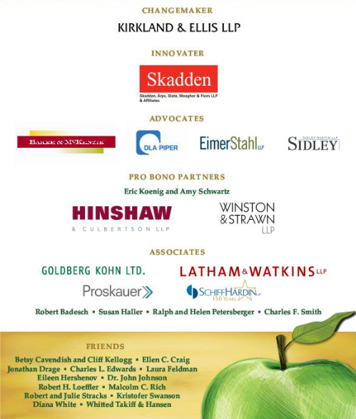 Associate partners for the event were Goldberg Kohn Ltd., Latham & Watkins, Proskauer, Schiff Hardin, Robert Badesch, Susan Haller, Ralph & Helen Petersburg, and Charles F. Smith.