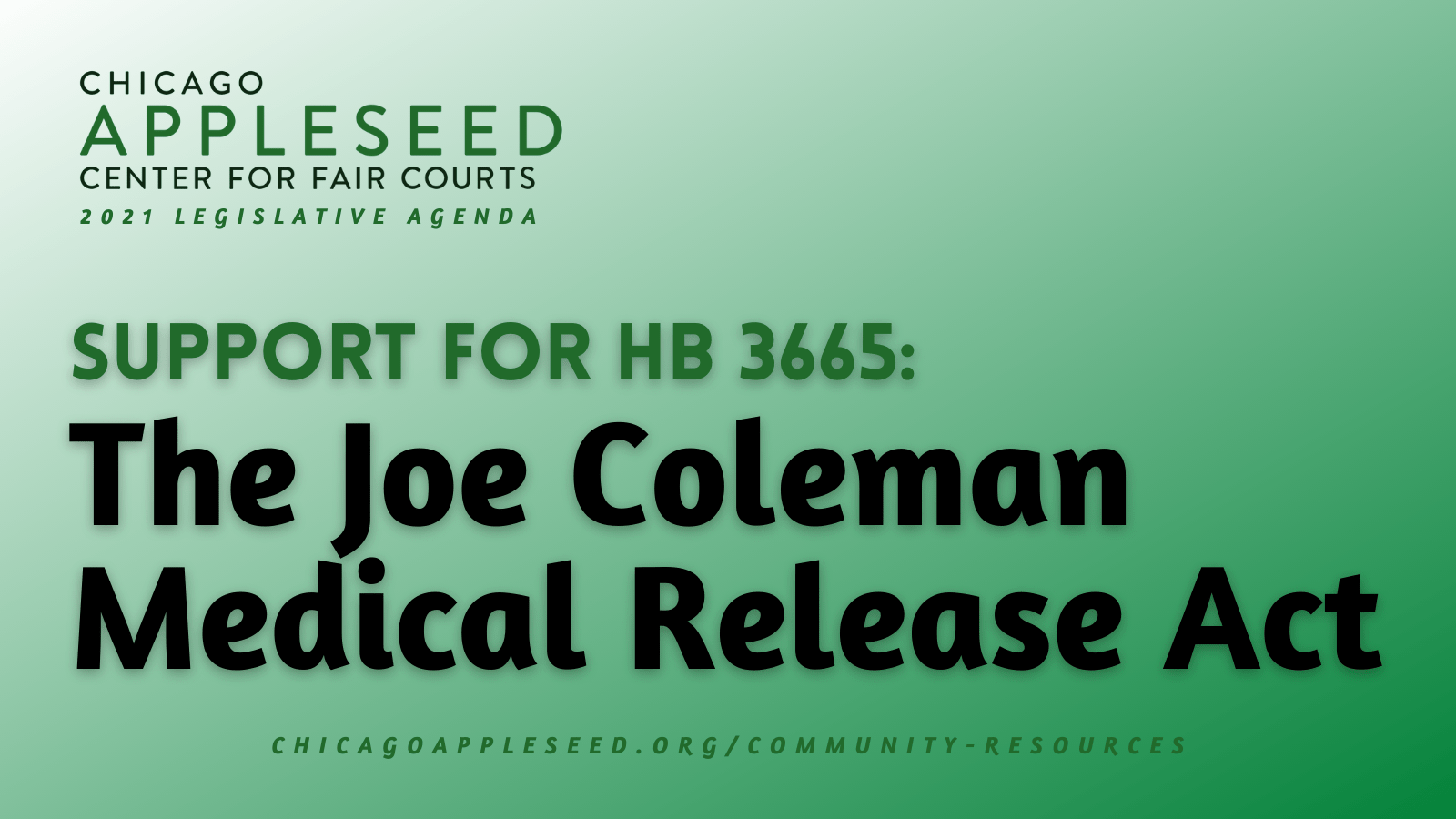 Click here for a one-pager fact sheet about HB 3665: The Joe Coleman Medical Release Act. For more information on Chicago Appleseed’s 2021 legislative agenda, visit ChicagoAppleseed.org/Community-Resources.