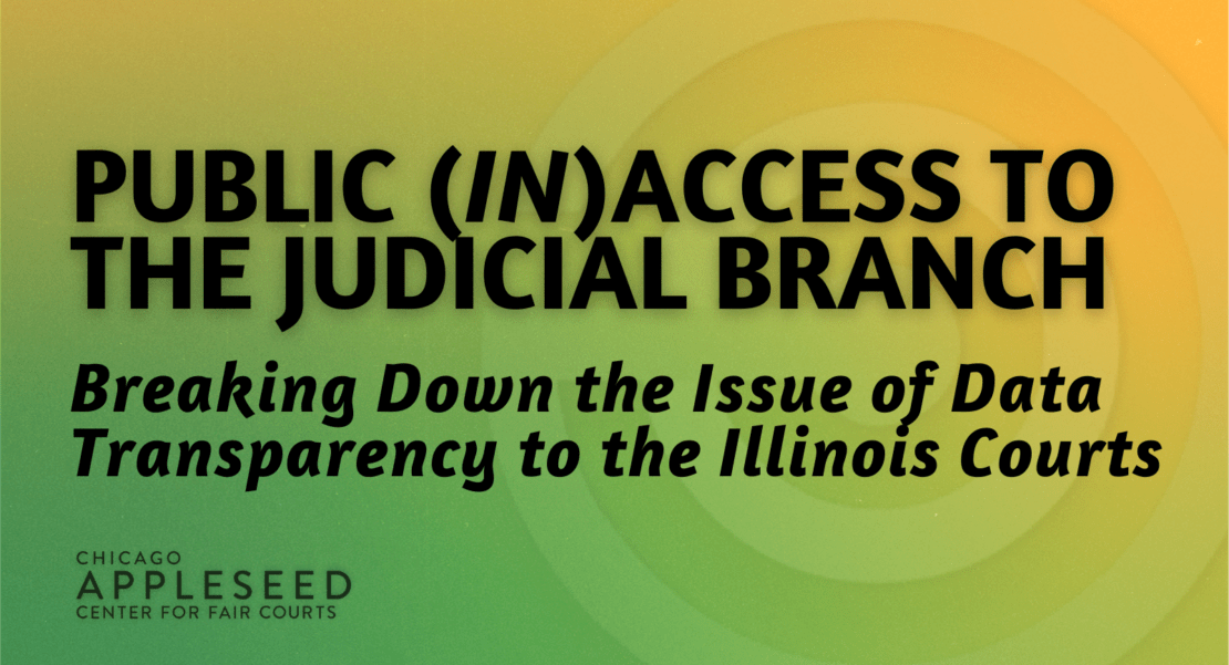 In 2019, Chicago Appleseed Center for Fair Courts and our pro bono partner, DLA Piper, looked at the open records laws, the Freedom of Information Act, and other public access … Continue reading Public (In)Access to Judicial Branch Data in Illinois