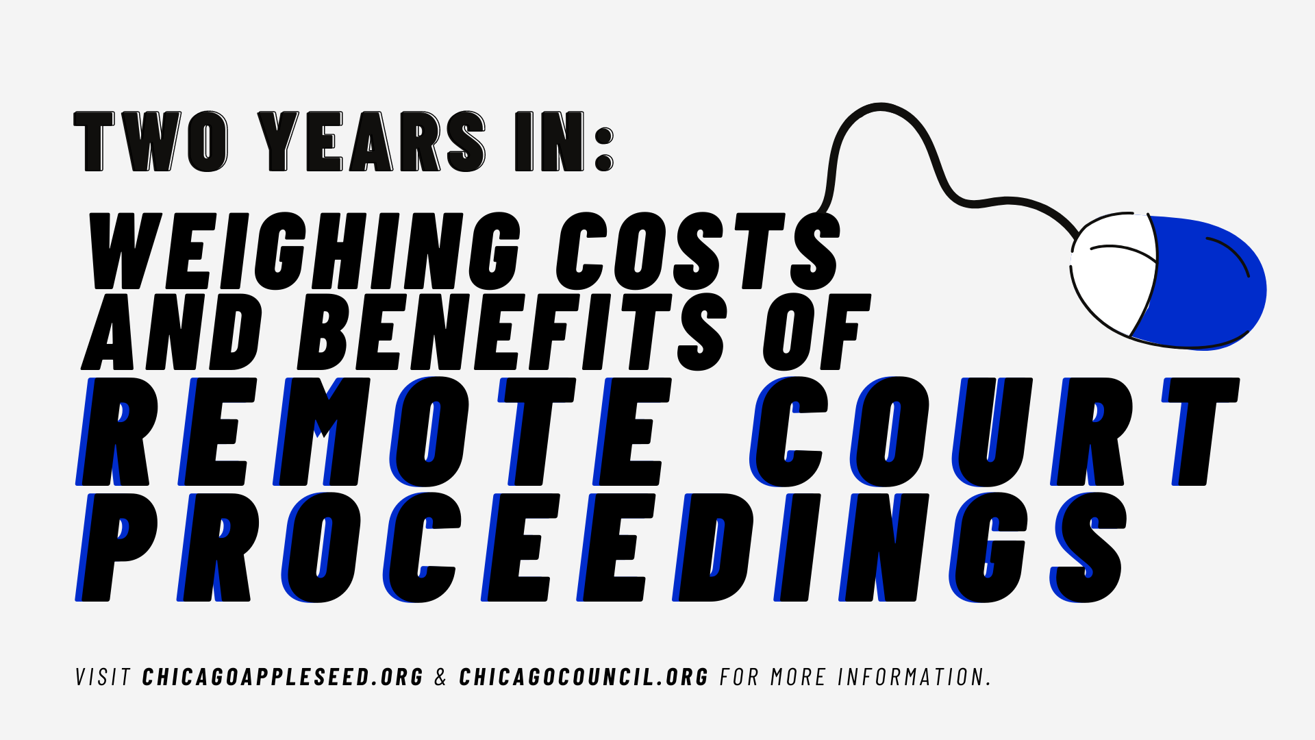 Early on in the pandemic, in August 2020, Chicago Appleseed and the Chicago Council of Lawyers, with pro bono assistance from Latham & Watkins, reviewed remote court proceedings in Cook County, focusing on due process implications and equitable access to courts—primarily in criminal proceedings. We recommended clearer procedures to: