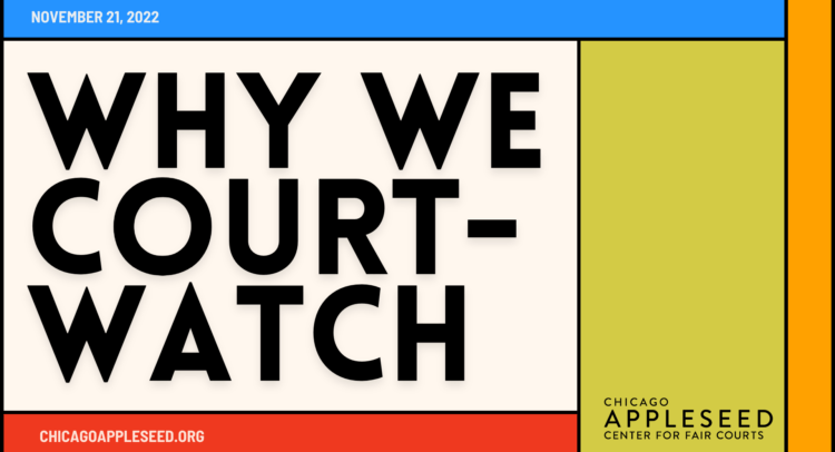 Chicago Appleseed Center for Fair Courts conducts court-watching in a variety of civil and criminal courtrooms in Cook County. Our volunteers observe courtrooms as a means to demystify the judicial process, hold judges and other court stakeholders accountable, and help strengthen our research and advocacy.