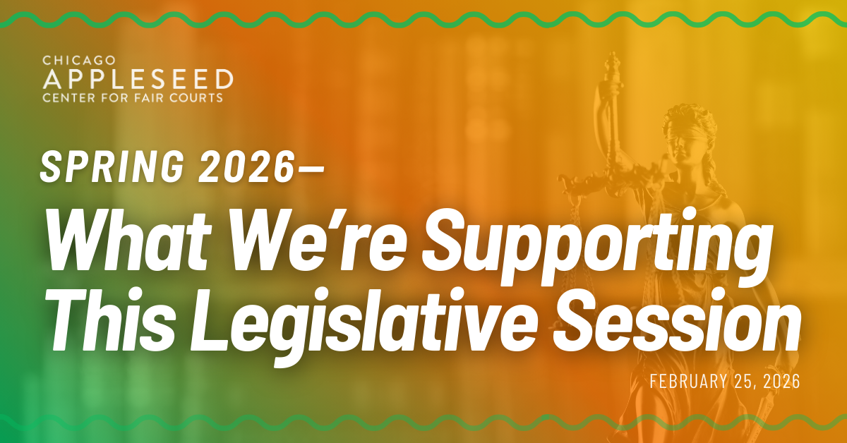 As the Illinois Legislature settles into its spring session, advocates have begun sharing legislative priorities and asking for individuals and organizations to support pending legislation. Chicago Appleseed is supporting a number of bills, listed below, focused on court transparency, family courts, and the criminal legal system this session.