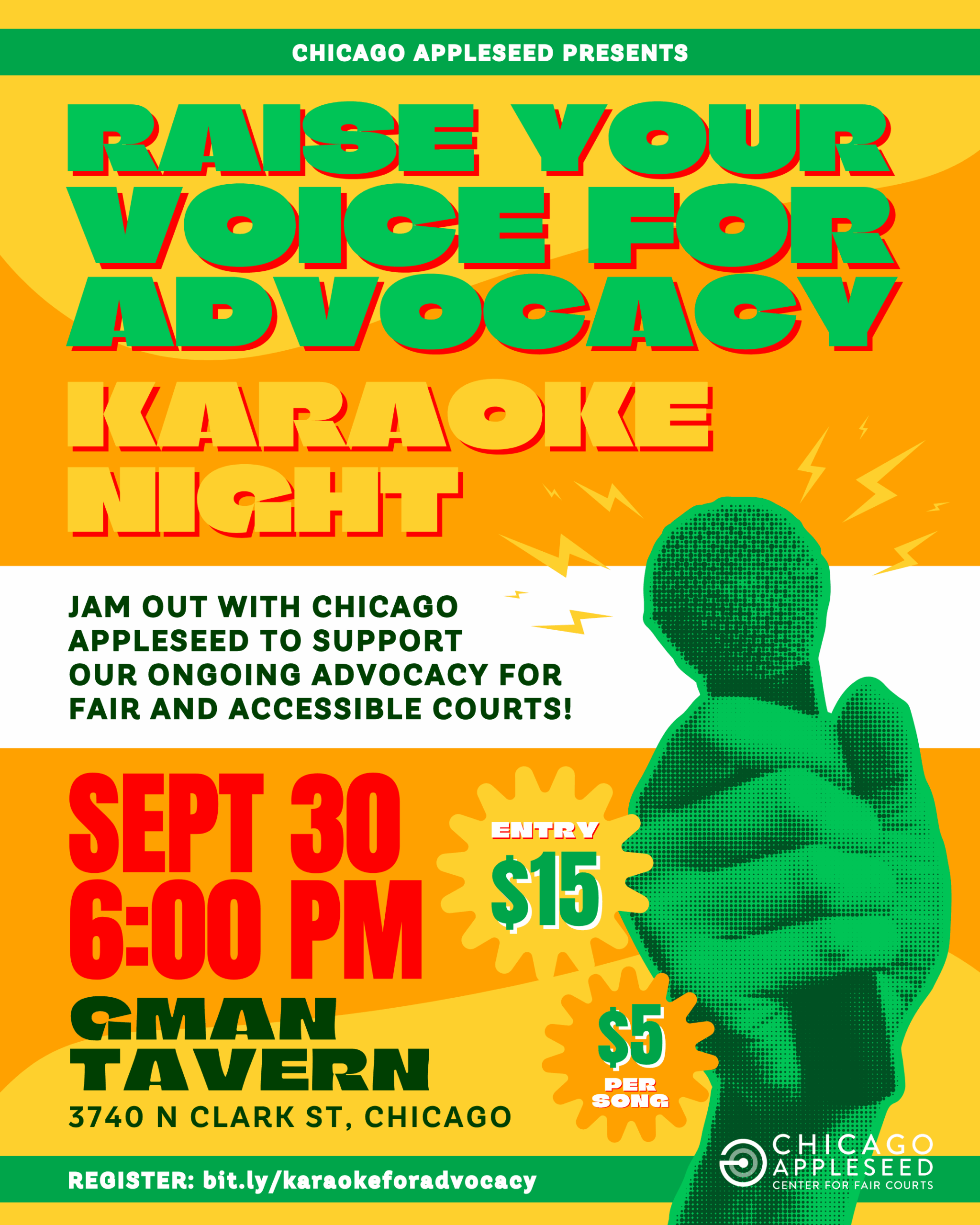 Join us on Tuesday, September 30th, at Gman Tavern (3740 N Clark Street) for a night of karaoke and fun in support of our advocacy!